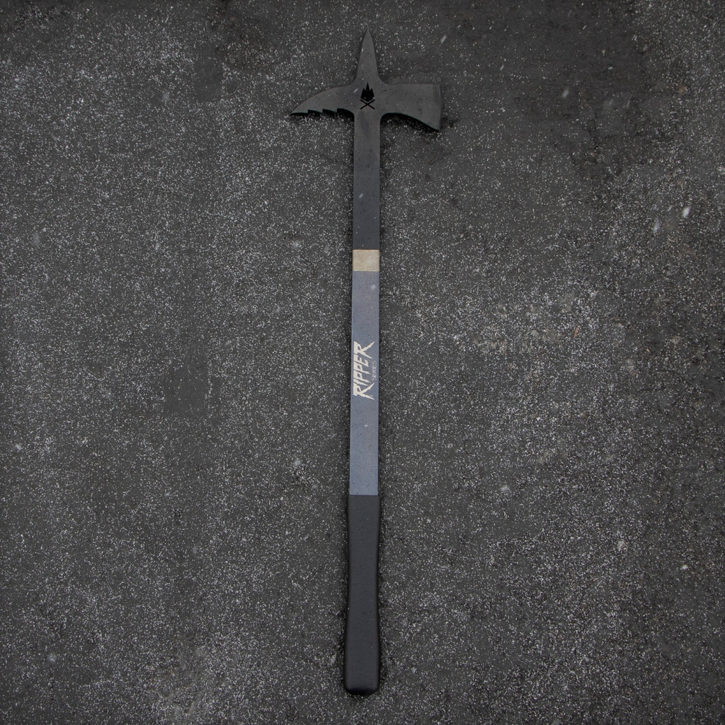 Wields an axe-like chopper, a serrated hook, and a poker for precision and versatility.