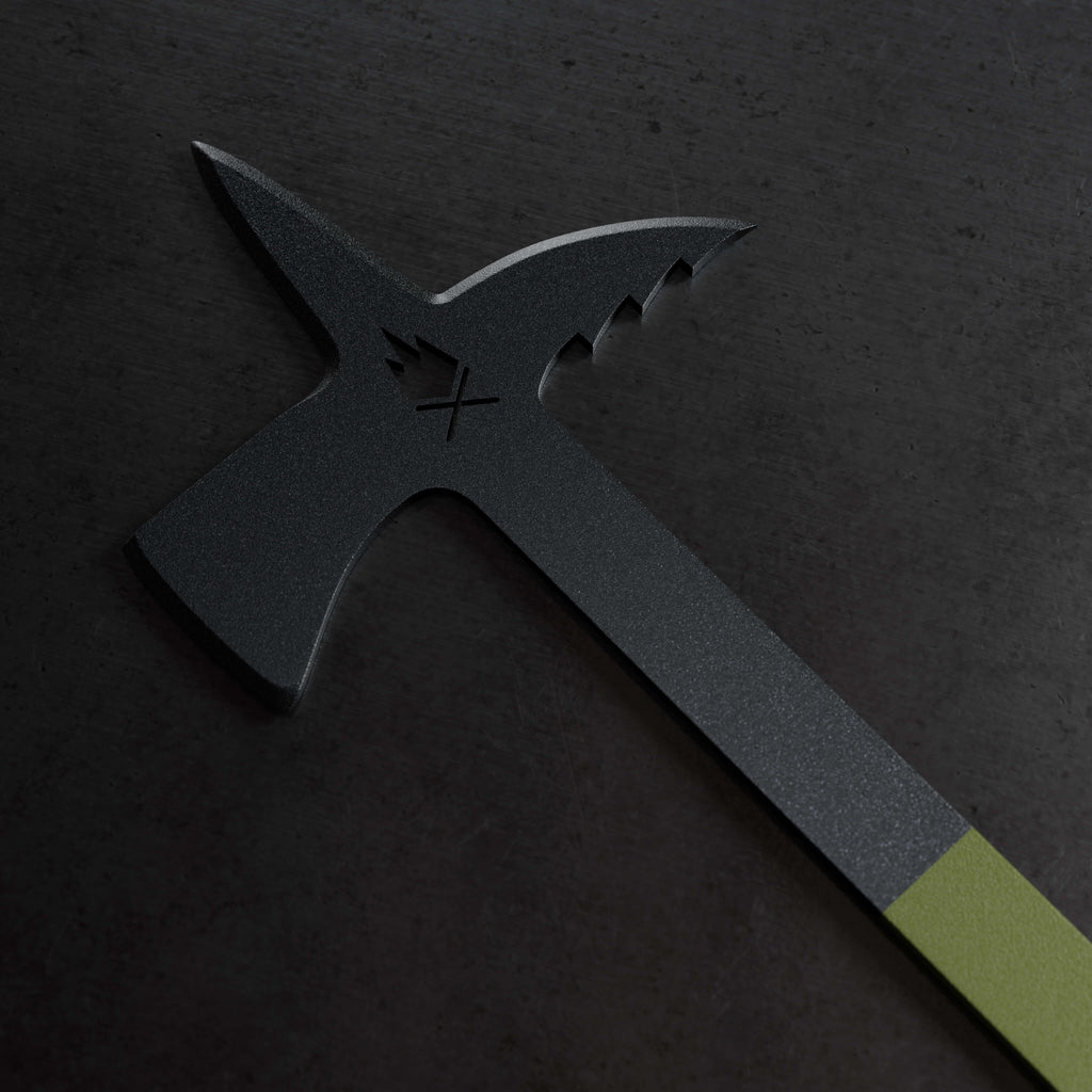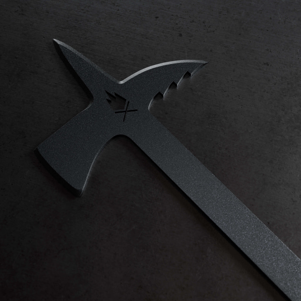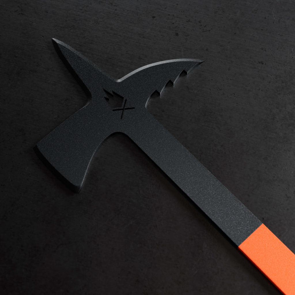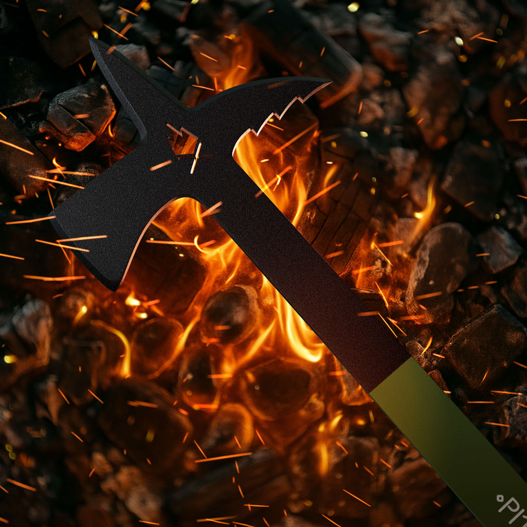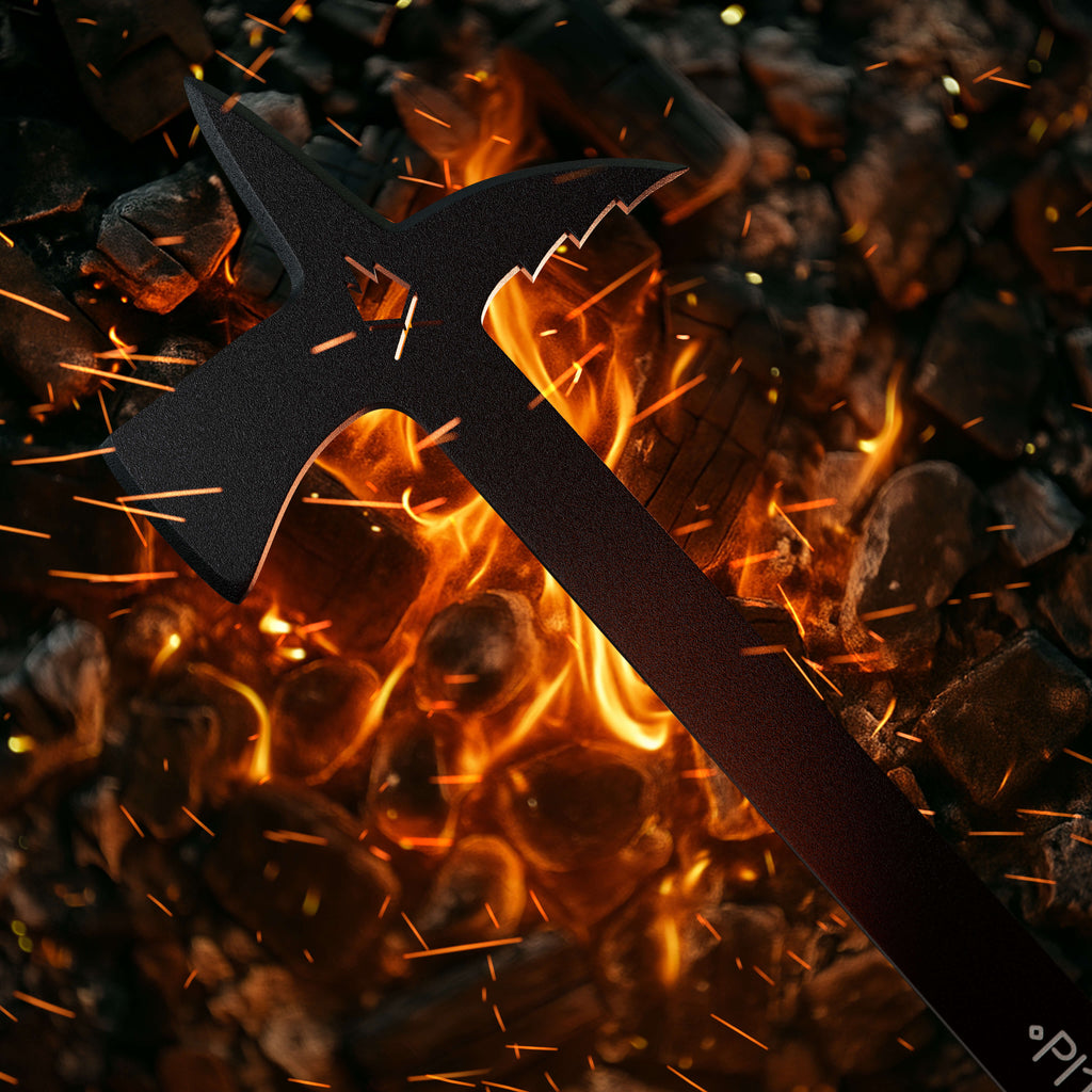 Wields an axe-like chopper, a serrated hook, and a poker for precision and versatility.